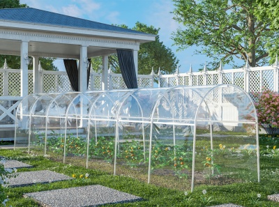 Укрывной материал в комплекте не идёт, потому что все предпочитают разное покрытие, в зависимости от того, какие культуры будет размещаться в парнике. Рекомендуем перед покупкой укрывного материала произвести необходимые расчеты, так чтобы ширины (от земли до земли) и длины (с учетом закрытых торцов) хватило на полное покрытие парника.