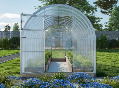 Поликарбонат каркасу под стать – минимальный гарантированный российским заводом-производителем срок его службы 10 лет. Это достигается благодаря технологиям изготовления: поликарбонат имеет специальный защитный слой на внешней поверхности, который надежно защищает материал от разрушения и выгорания, а растения, находящиеся внутри от пагубного влияния ультрафиолета.